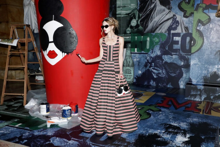 The set design mirrored the collection’s bold spirit. Guests encountered a 20-foot Statue of Liberty adorned in butterflies and roses, a reimagined Constitution titled We the Women, and an abstract American flag mural, creating an immersive backdrop that celebrated heritage and innovation. With this collection, Bendet fused whimsy, history, and modern style, offering a tribute to the women whose influence continues to shape fashion and the country itself.
