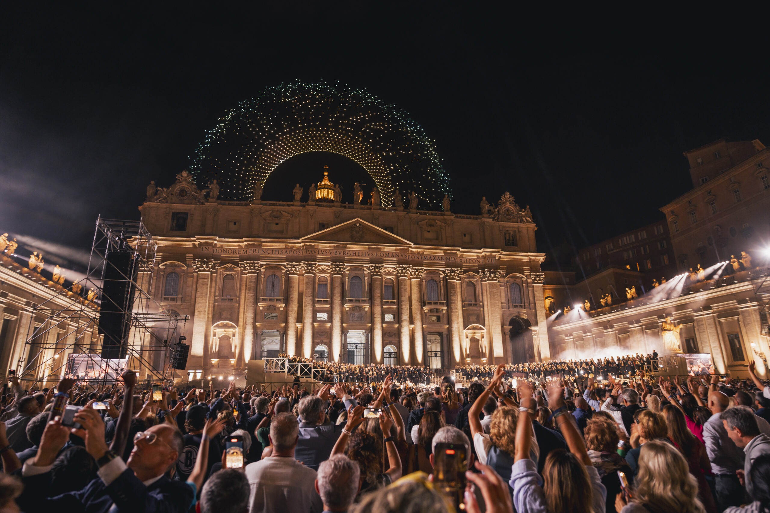 The world-renowned tenor performed alongside Karol G for their first live duet of “Vivo Por Ella” and joined Teddy Swims for a stirring rendition of “Amazing Grace.” Additional performances came from Pharrell Williams, Jennifer Hudson, John Legend, Clipse, Jelly Roll, BamBam, and Angélique Kidjo, creating a one-of-a-kind fusion of gospel, soul, hip-hop, pop, and classical music. The evening also featured reflections from cultural, diplomatic, and sports leaders, as well as a breathtaking drone and light show by Nova Sky Stories, inspired by the Sistine Chapel.