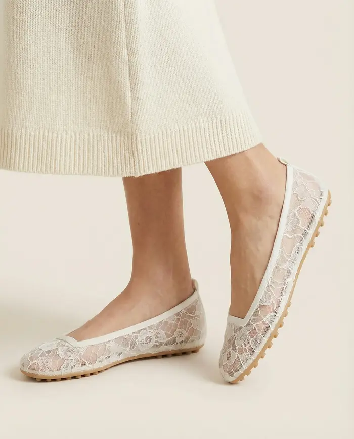 The Lace Collection features sheer, structured lace uppers finished with grosgrain piping and velvet-lined cushioned insoles, offering both comfort and elegance. A lower vamp highlights a feminine line and natural toe cleavage, giving each shoe a romantic yet effortlessly wearable quality. Designed to pair with denim, tailoring, or something dressier, these are flats meant to be styled often—not saved for special occasions.
