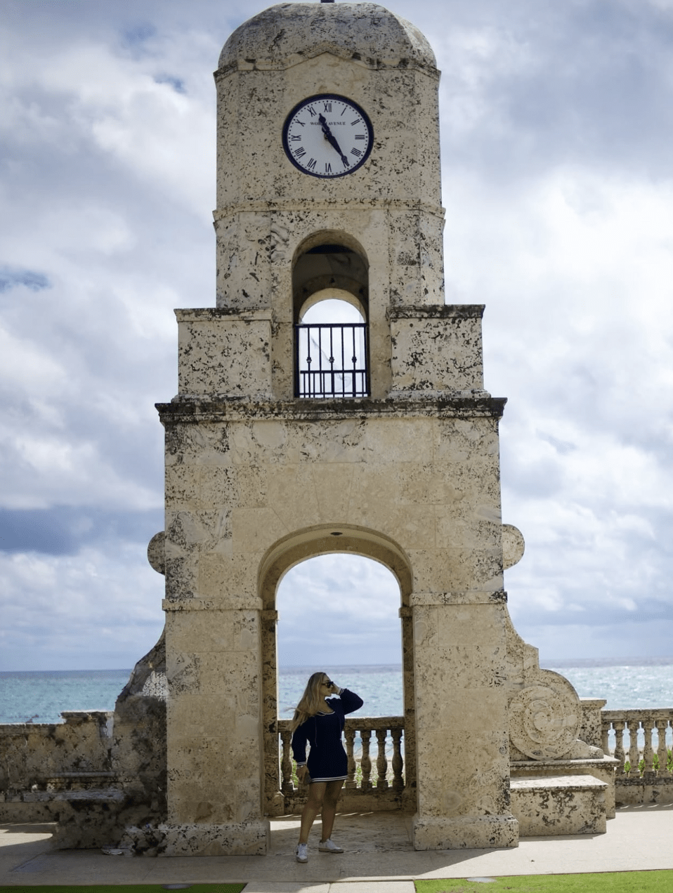 The Worth Avenue Clock Tower rises 25 feet in height and was constructed in the late aughts of stone and coral from the Dominican Republic in a Moorish Revival design style to complement the original architectural aesthetic of Worth Avenue. Costing $600,000 to build, it is one of the city’s newest landmarks, despite its venerable appearance.